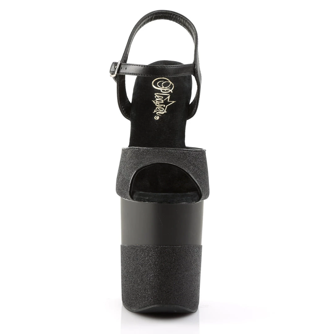 Sparkle and shine in these gorgeous eight inch pole dancing platforms by Pleaser. These sexy high heels are perfect for anyone looking for a classic style with extra sass as they have amazing sections of glistening glitter.