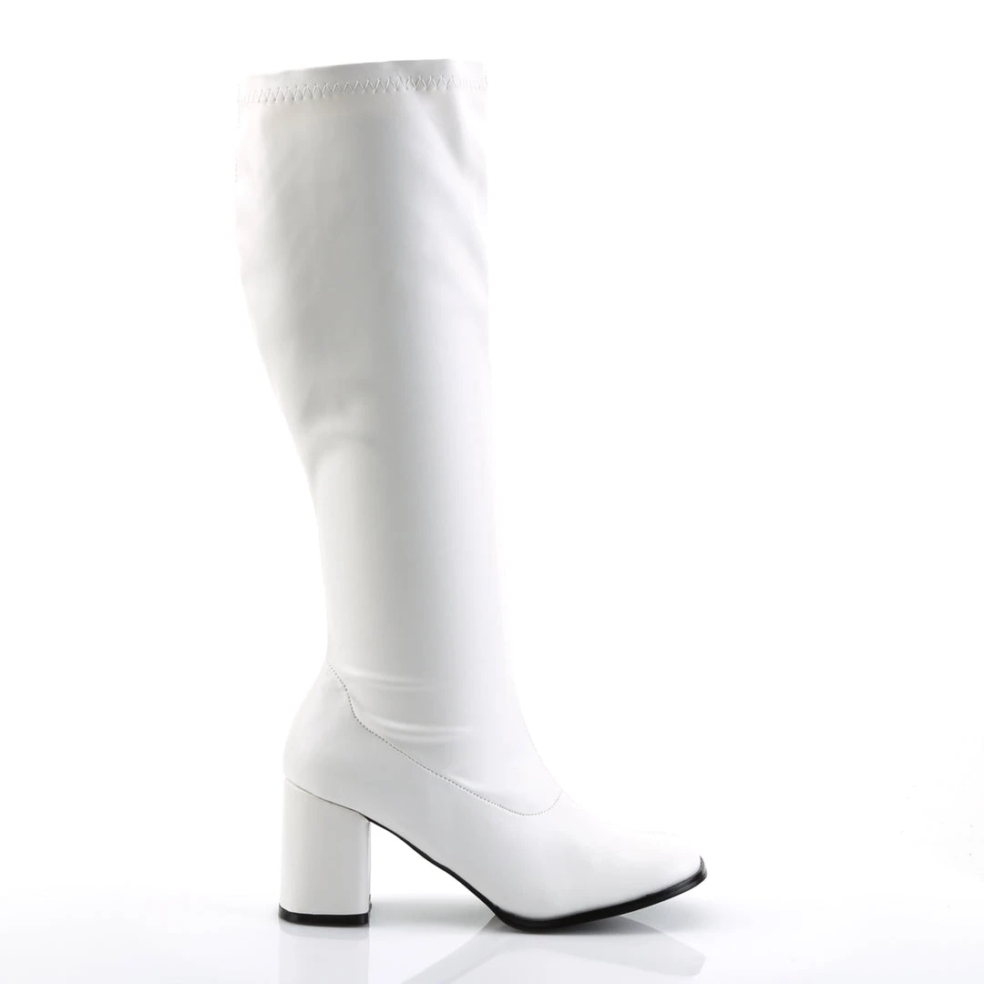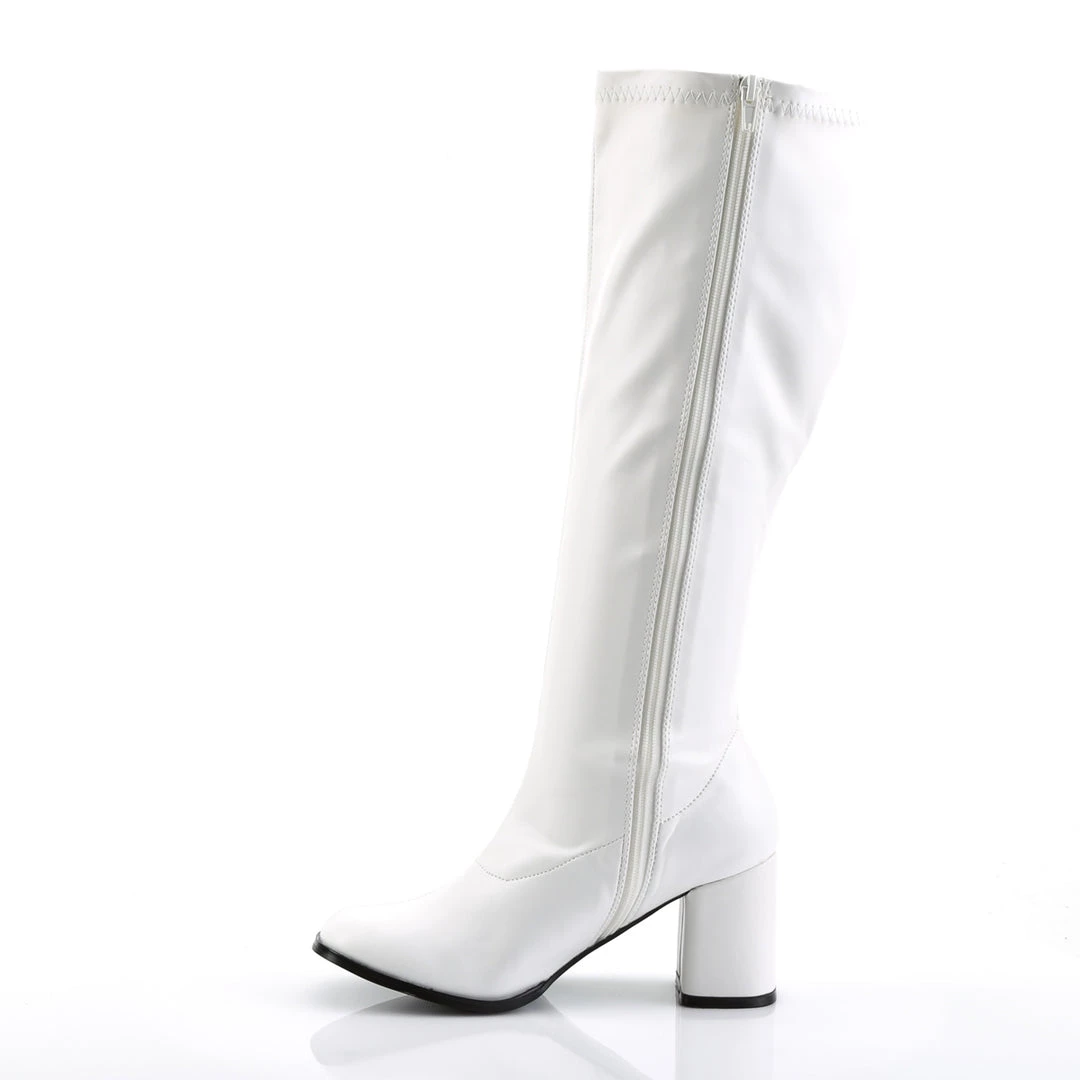 Gogo 300WC Wide Fit White Matte Knee High Boots by Pleaser ShoesÂ