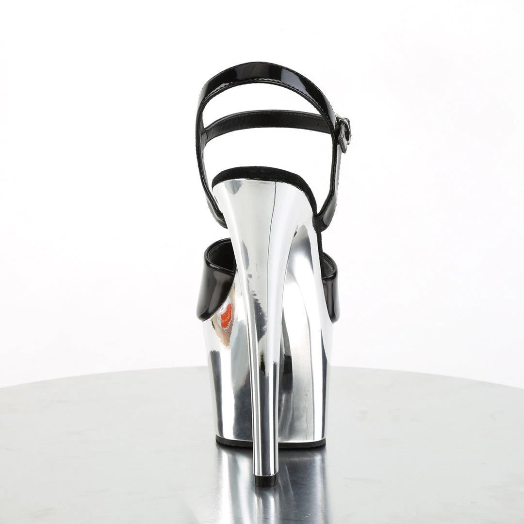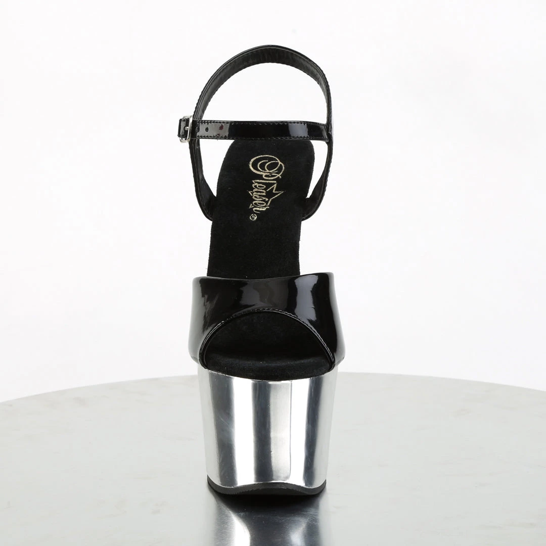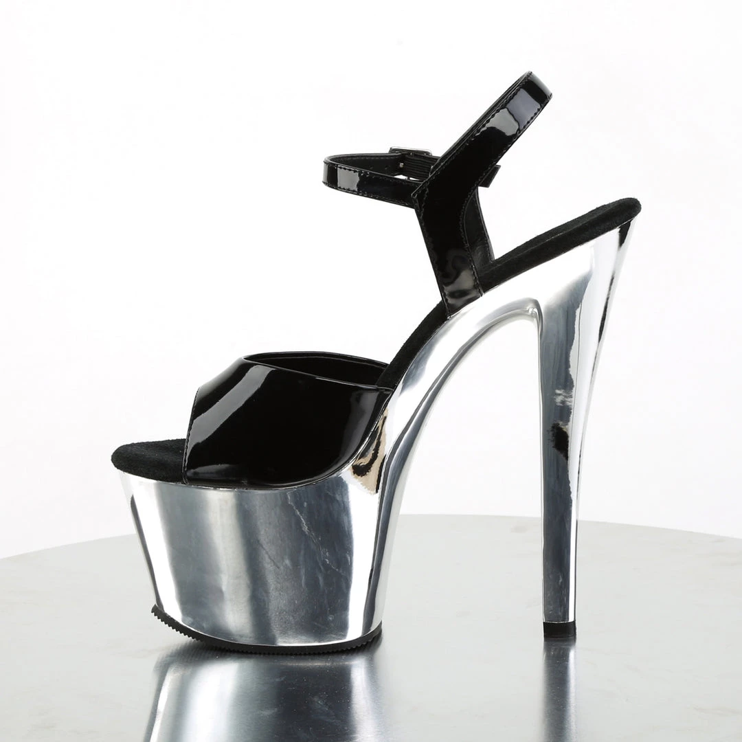 Sky 309 Black Patent and Silver Chrome Platforms by Pleaser ShoesÂ