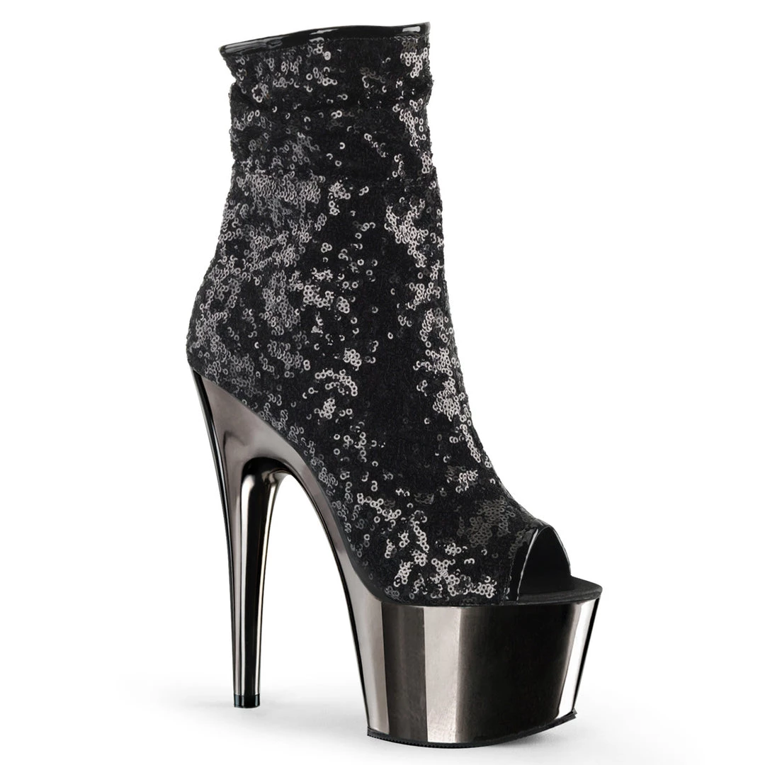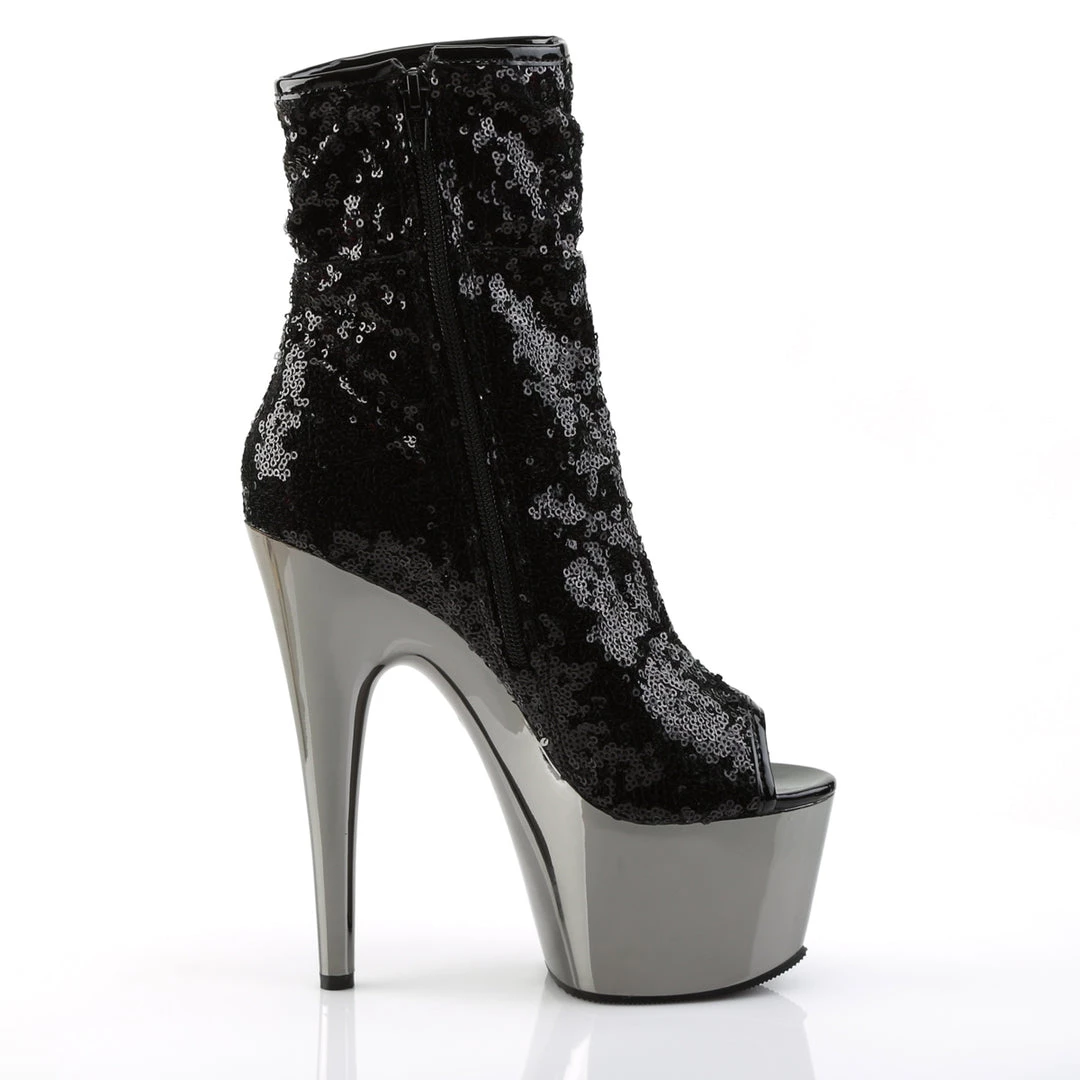 Adore 1008SQ Black Sequin Platform Peep Toe Boots by Pleaser Shoes