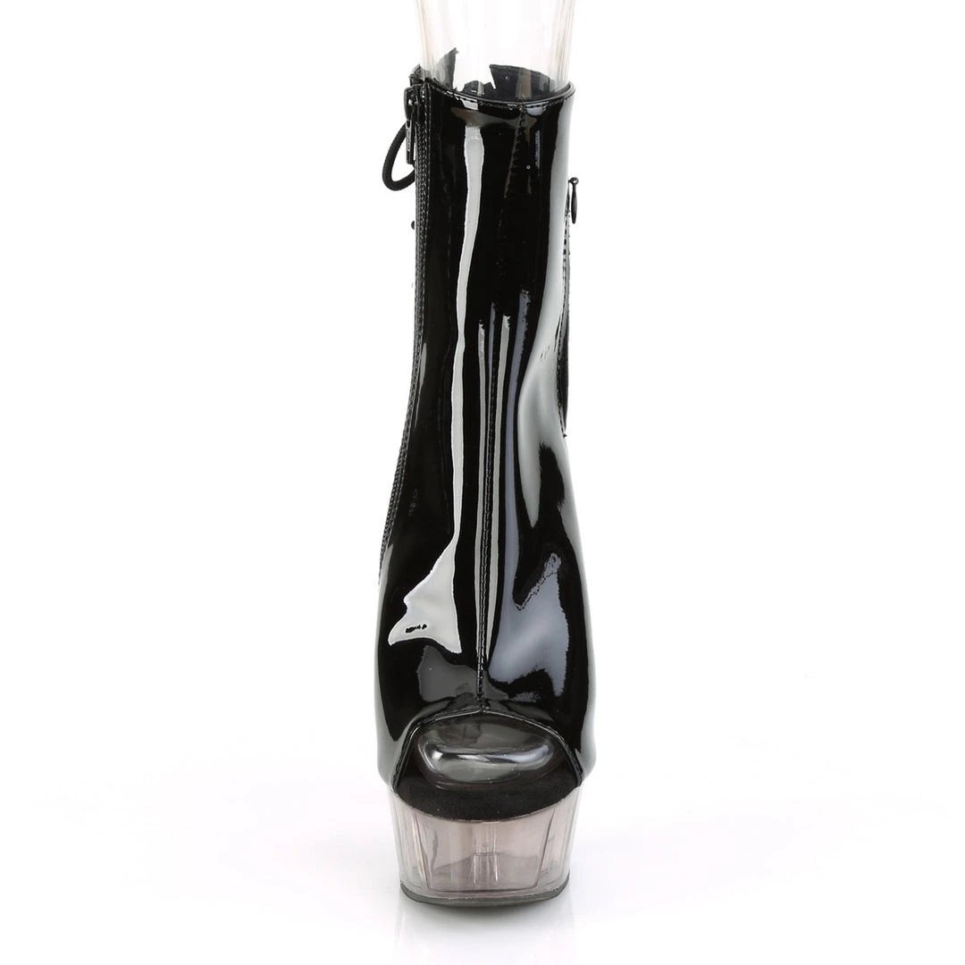 Delight 1018T Black Patent Ankle Boots by Pleaser Shoes