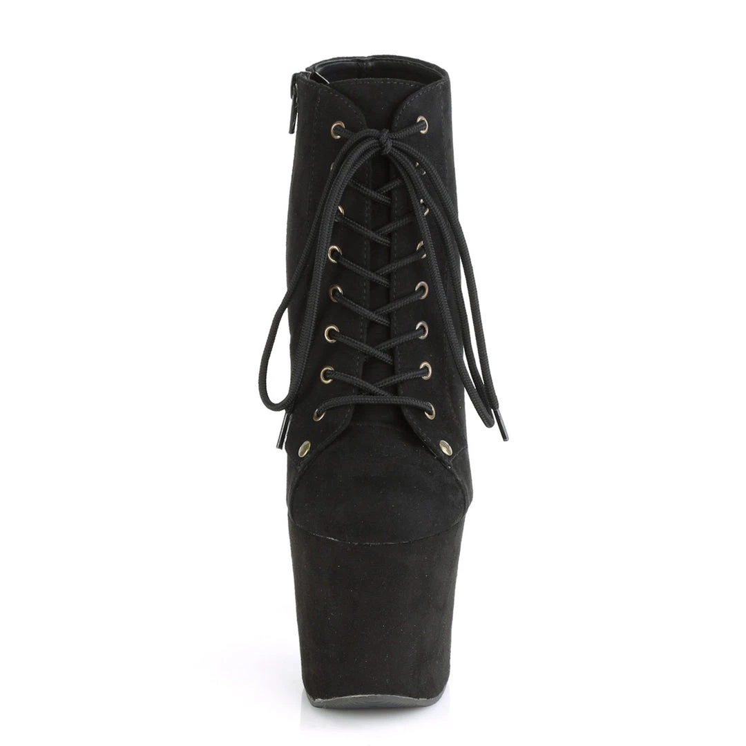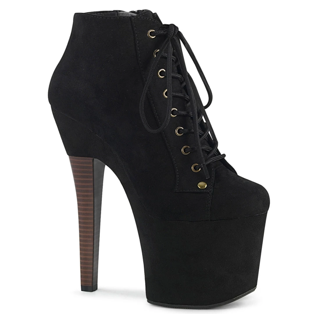 Seven inch pole dancing platform ankle boots by Pleaser. This fun Timberland style features a lace up front, padded collar and rubber lug outsole with inside zip closure for easy on and off. These amazing boots are versatile and can be worn from day to night.