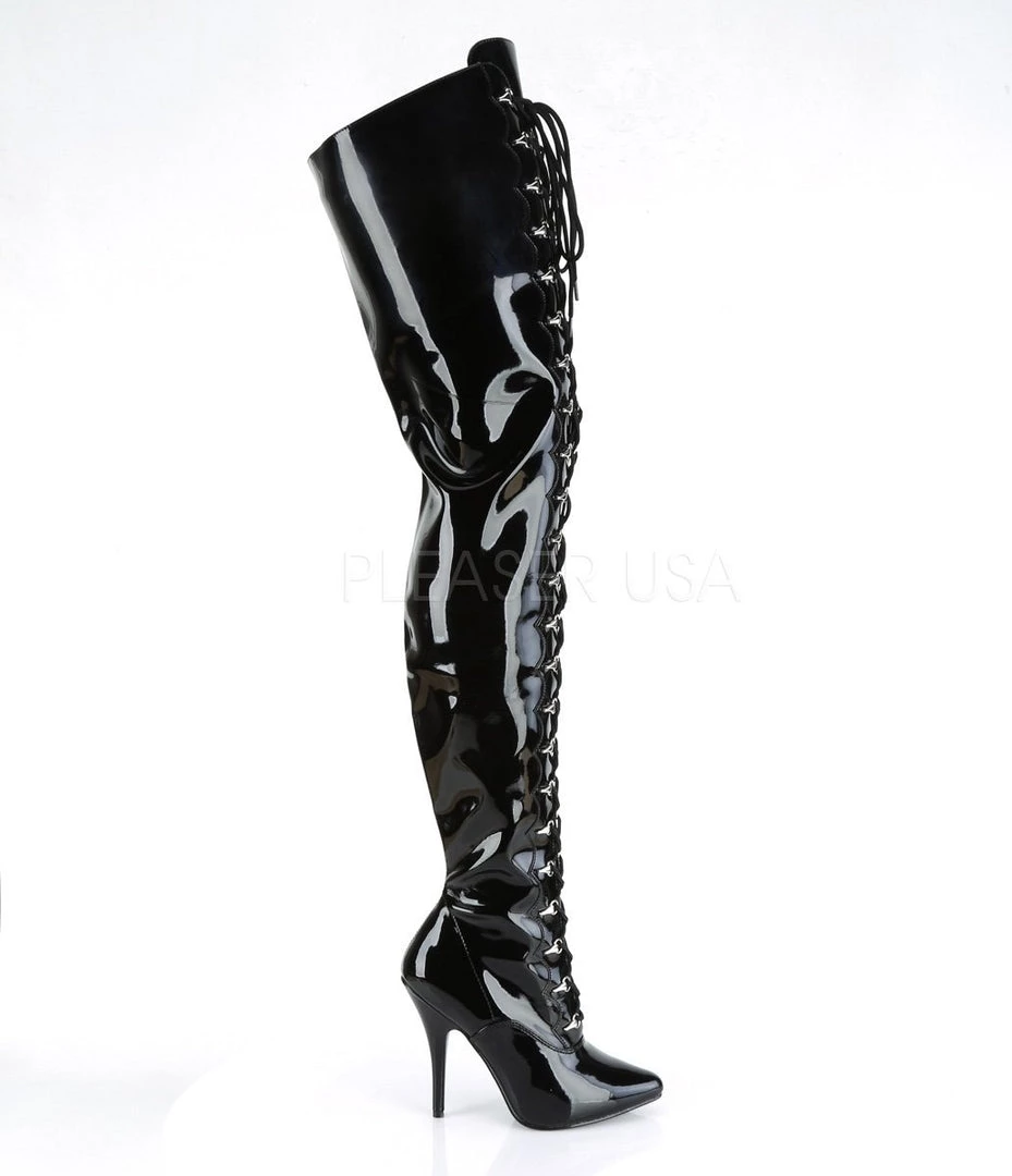Seduce 4026 Black Patent Thigh High Boots by Pleaser ShoesÂ