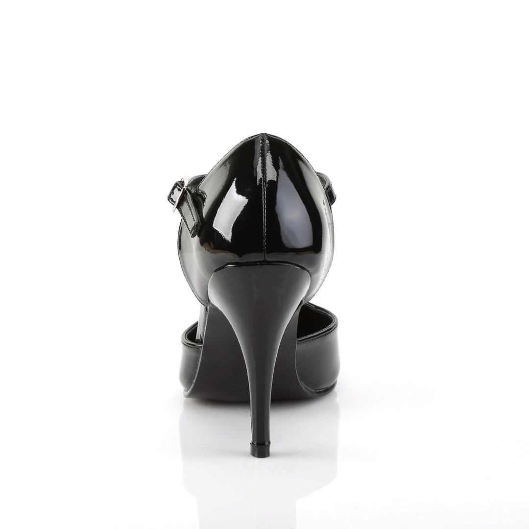 An elegant and classic 4 inch pump high heel with flattering t-strap. These black patent shoes are a great addition to any wardrobe and can be worn with many different outfits. Ideal for day wear, these shoes are very feminine and stylish.