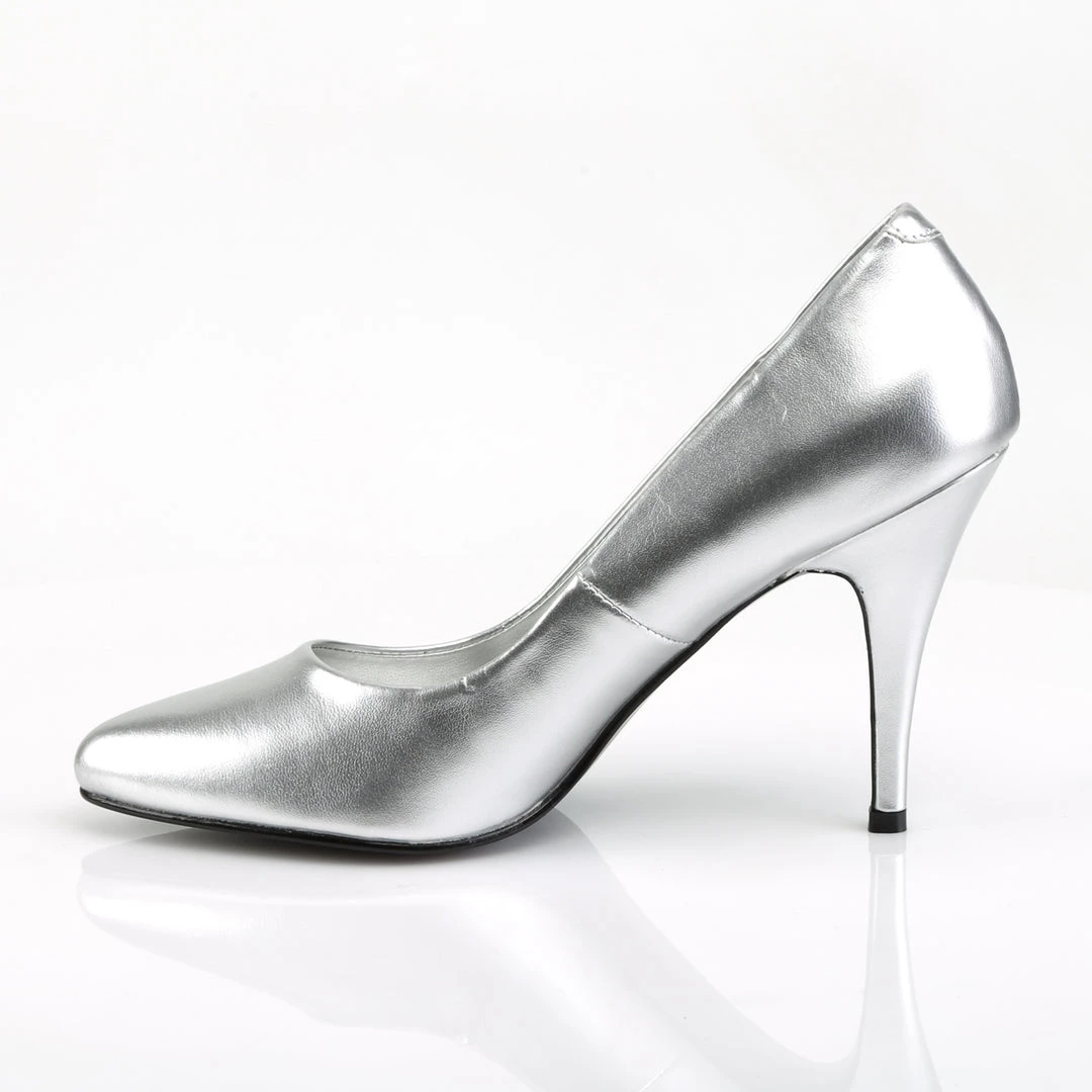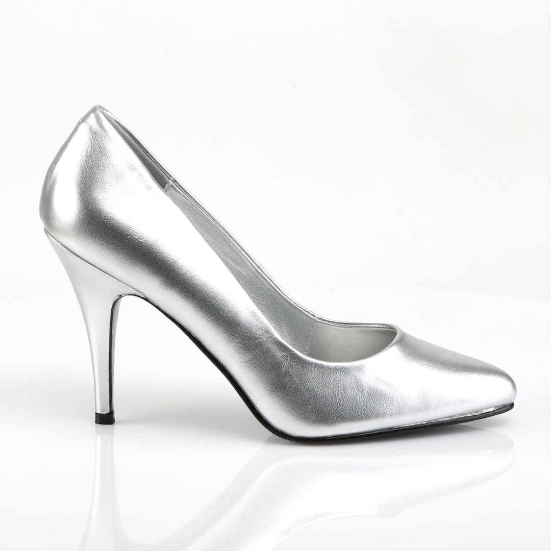 Gold faux leather shoes with court design, chic pointed toe and front flat sole. The 4 inch (10 cm) high heels lift up the foot and adds extra length to the legs, while still preserving a comfortable position for the foot. Versatile and easy to wear, these shoes are suitable for a great variety of outfits.